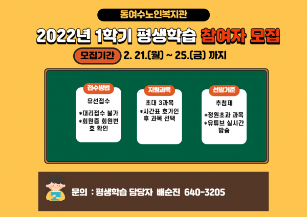 22년 1학기 평생학습 참여 어르신을 모집합니다.