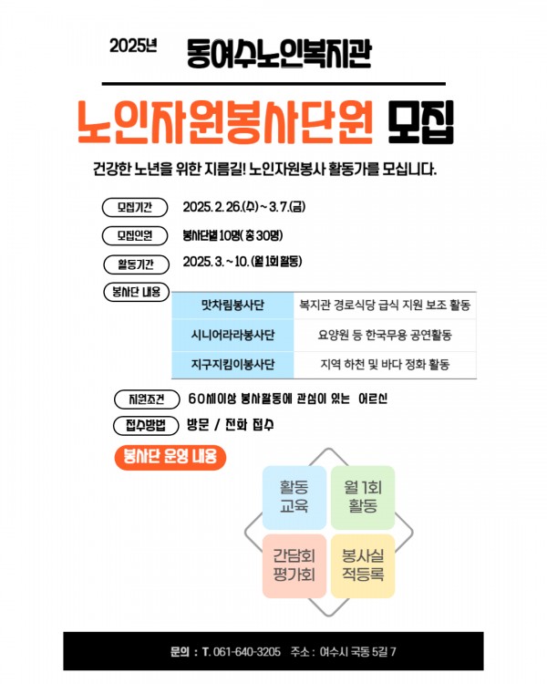 2025년 노인자원봉사활성화지원사업 노인자원봉사단원 모집