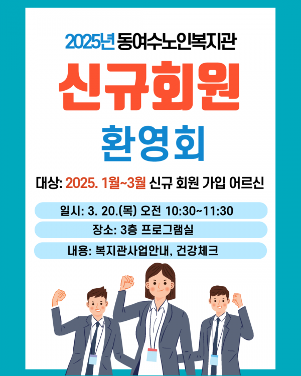 2025년 1월 부터 3월 동안 신규 가입 회원 어르신들을 모시고 환영회를 가지려고 합니다.