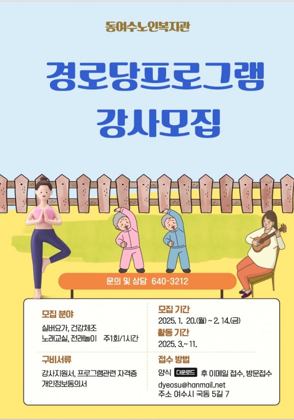 2025년 경로당운영혁신사업 프로그램 강사 모집