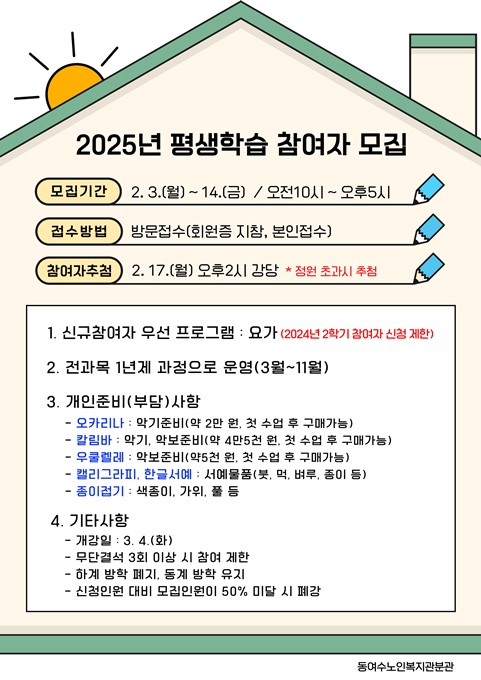 2025년 평생학습 접수 일정 및 프로그램 안내드리오니 많은 관심과 참여 부탁드립니다!