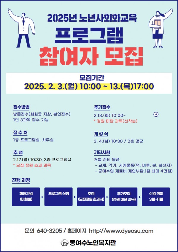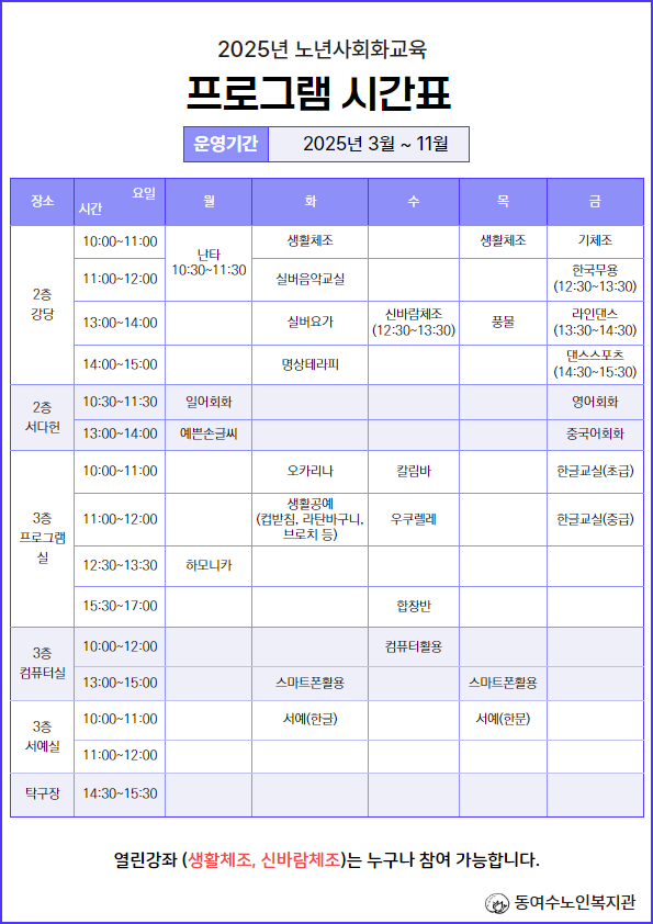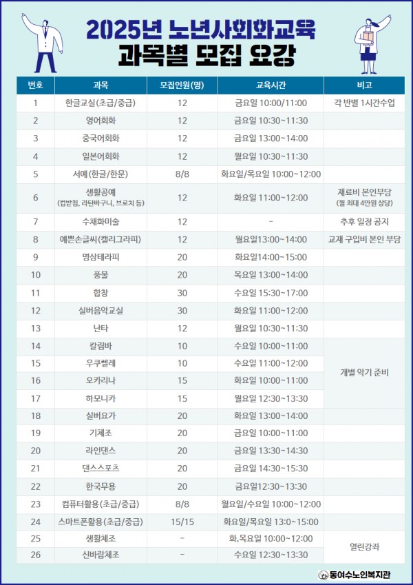 동여수노인복지관 2025년 노년사회화교육 프로그램 참여자 모집