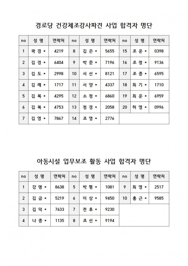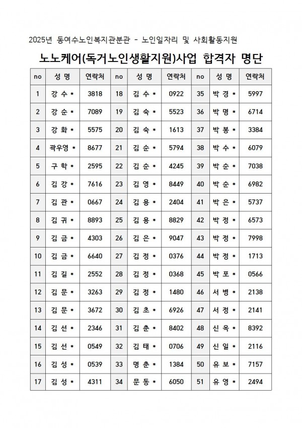 [분관] 2025년 노인일자리 및 사회활동지원사업 합격자입니다.