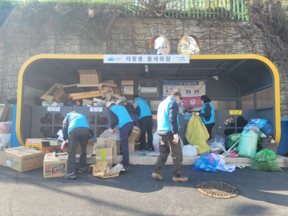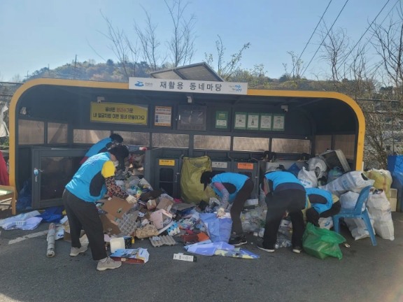 재활용집하장 분리 수거 및 주변 환경을 정비하여 지역사회 환경개선에 최선을 다하고 있습니다.