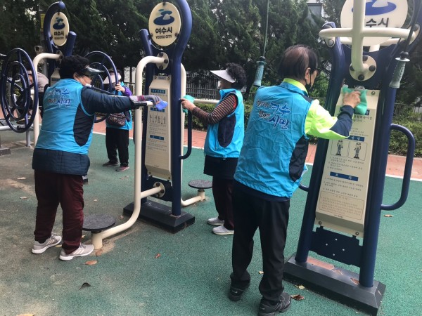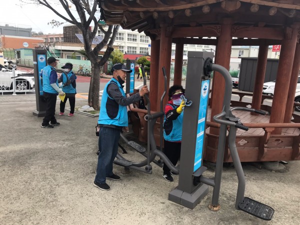 노인일자리 및 사회활동지원사업 생활체육시설 소독 사업단 4월 활동모습