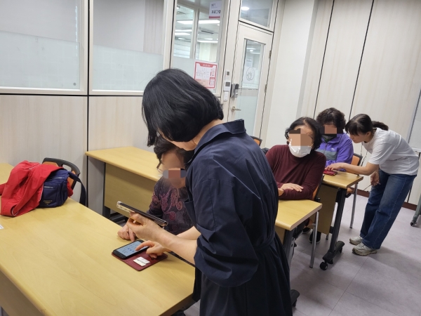 기초반과 활용반으로 나누어 수업이 진행되고 있으며 카카오톡 문자보내기, 119어플설치, 사진편집 등 다양한 수업을 배우고 있습니다.