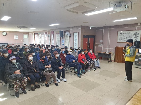 노인인력개발원의 자료를 활용하여 활동 중에 발생할 수 있는 안전사고 예방법과 인권침해 사례 등을 교육하였습니다. 어르신들이 집중해서 들어주신 결과 유익한 시간이 될 수 있었습니다.