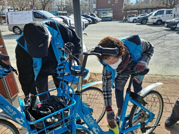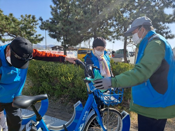 노인일자리및 사회활동지원사업 공용자전거 소독 사업단 3월 활동모습