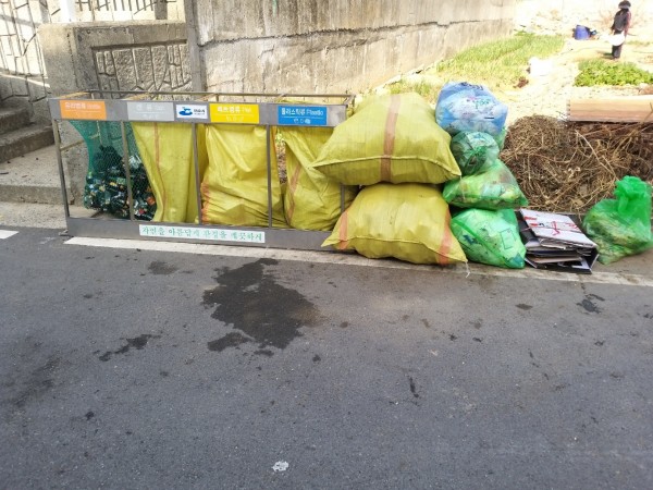 도심지역 주택단지 분리수거장에서 다양한 쓰레기를 분리배출 활동을 하며 지역환경 미화에 힘쓰고 계십니다.
