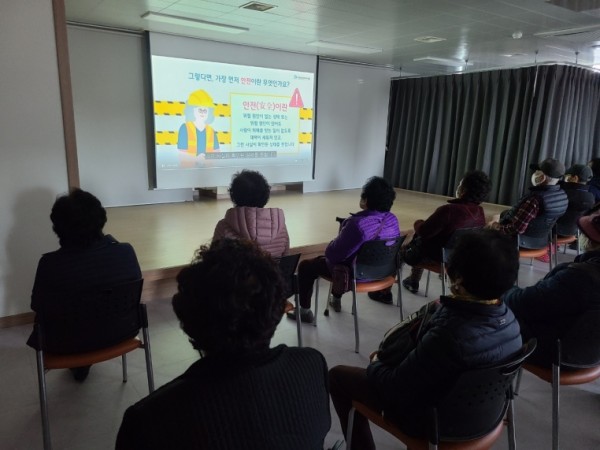 노인일자리 활동 시에는 물론 일상생활에서도 꼭 지켜야 할 안전사고 예방 교육과 성희롱 예방, 인권교육 등을 동영상을 활용하여 진행하였습니다.