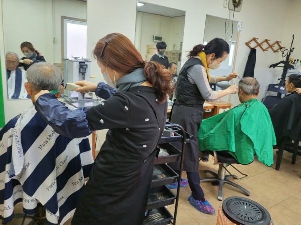 이미용 서비스 진행은 쌍봉종합사회복지관 신중년 경력형 일자리사업에서 파견되었습니다.