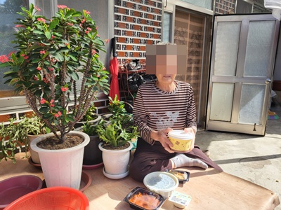 [분관]도심지역 도시락을 전달했습니다. 메뉴로는 맛깔스런 밑반찬(제육볶음, 연두부, 어묵볶음)과 부드러운 한우미역, 백미밥을 준비해 어르신댁을 방문해 전해드렸습니다.
