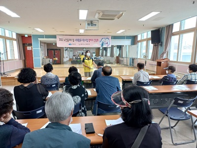 2022. 8. 31(수) 노인사회활동지원사업 (신나고체조, 경로당손마사지, 생활체육시설소독) 참여자를 대상으로 간담회를 진행하였습니다.
