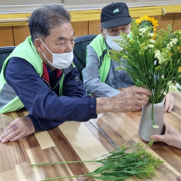 화병에 꽂으시며 이용어르신간에 정서적,심리적 안정감을 느낄수 있는 시간이었습니다.
