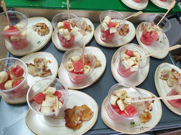 6월 주간보호 요리활동으로 컵과일과 감자전을 만들었습니다.