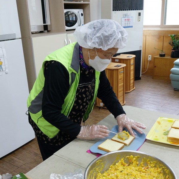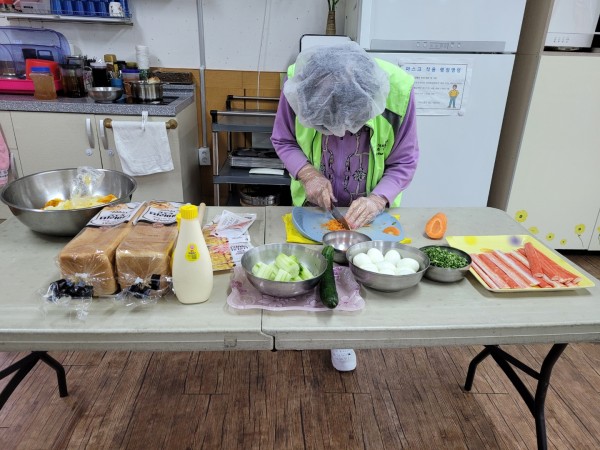 주간보호사업 5월 요리활동으로 이용어르신들께서 야채 햄 샌드위치를 만들었습니다.