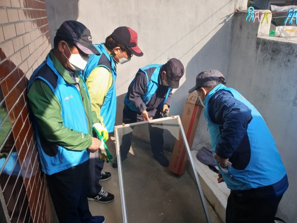 해묵고 낡은 방충망 교체에 어르신들의 손들이 바빠지십니다.