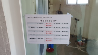 밑반찬 전달 일정표를 각 가정에 부착해드려 보다 안전하고 위생적인 전달이 될수 있도록 했습니다.