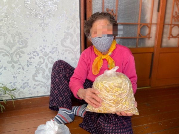 오늘은 밑반찬과 함께 국동식품에서 후원하신 콩나물을 전달하였습니다.