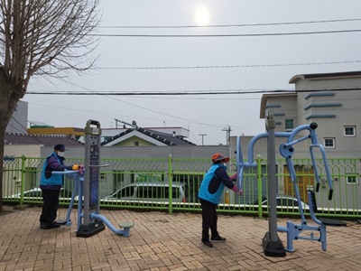 노인사회활동지원사업 생활체육시설소독사업단 활동모습