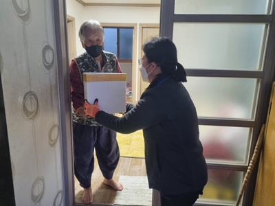 재가노인서비스에서는 겨울나기에 필요한 밑반찬인 김장김치를 전달해드려 정서적인 안정감과 경제적 부담을 덜어드렸습니다.