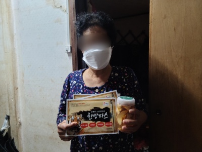 지역 독거 어르신들께 밑반찬 도시락과 과일청, 파스를 전달해 드렸습니다.