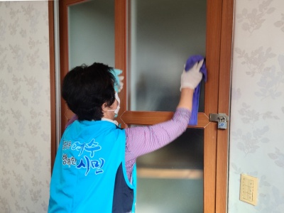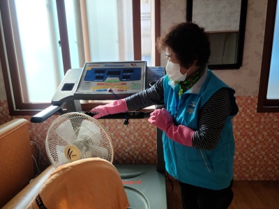 경로당 내ㆍ외부 환경정리와 집기, 비품 등을 알코올로 소독하는 활동을 하고 계십니다.