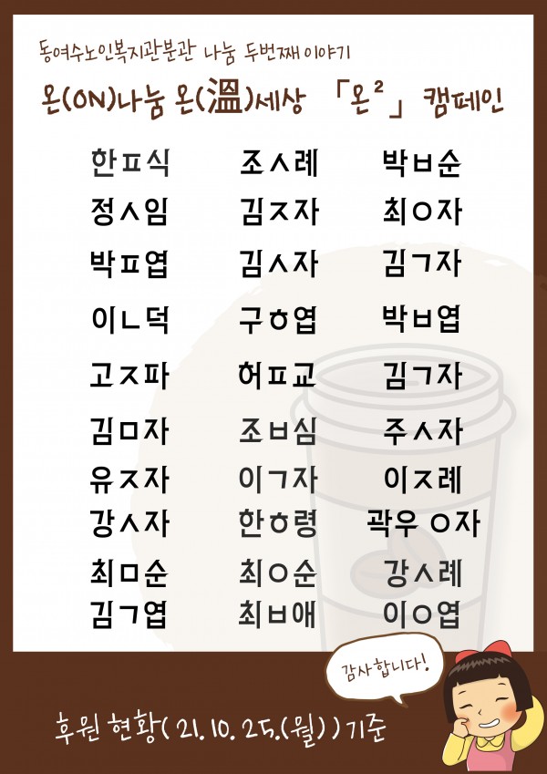 [분관]「온²」 나눔 캠페인 후원현황 - 10. 25.(월) 3시 기준