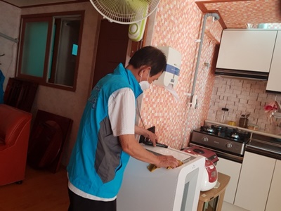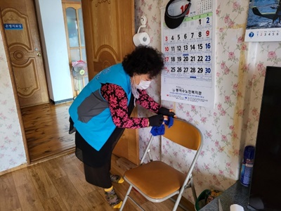 경로당 어르신을 대상으로 건강체조지도를 해야하지만 코로나19로 인해 경로당 집기소독으로 대체활동 중입니다.
