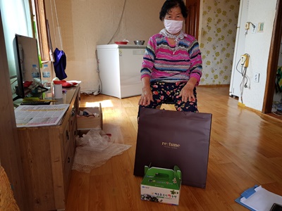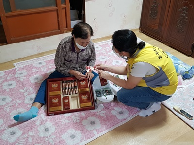재가노인서비스에서는 추석을 맞아 대상 어르신들께 송편과 홍삼음료를 전달해드렸습니다.