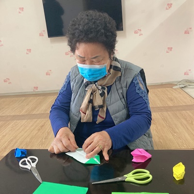 치매예방을 위한 경로당 어르신 종이접기 수업을 진행했습니다.