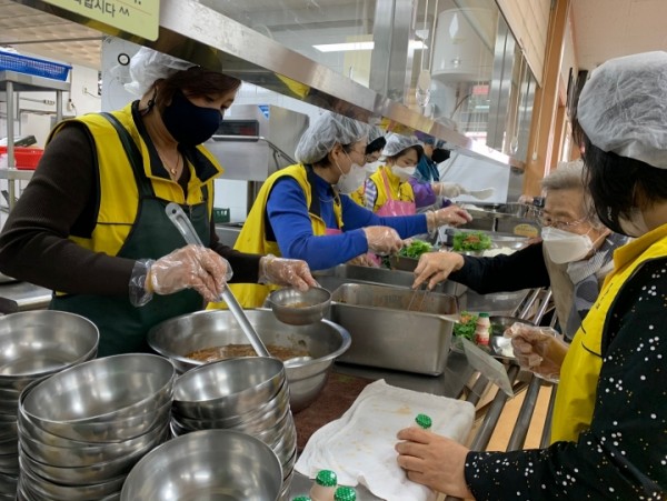 동여수노인복지관 경로식당입니다. 오늘은 해오름로타리클럽에서 봉사를 오셨습니다. 항상 일등으로 오시는 박oo회장님을 비롯하여 클럽 회원분들께서 즐겁게 웃으시며 굳은 일도 마다하지 않고 어르신 점심식사를 준비해주셨습니다. 코로나19로 인해 사회적거리두기 단계가 지속되는 상황에서도 복지관 봉사를 와주셔서 깊은 감사드립니다^^