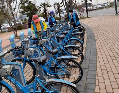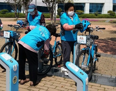 동여수노인복지관 2021년 노인사회활동지원사업 공용자전거 소독사업단입니다.