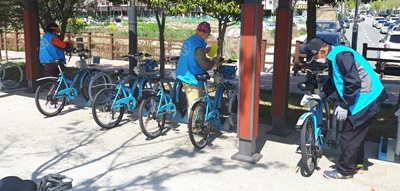 2021년 노인사회활동지원사업 공용자전거 소독사업단입니다.