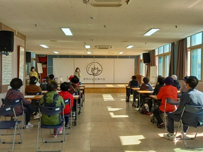 2021. 4. 5(월) 노인사회활동지원사업 이웃애게로 활동교육을 진행 하였습니다.