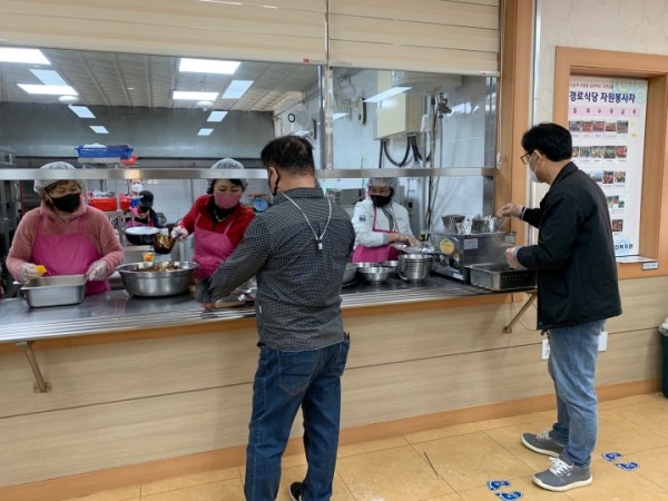 동여수노인복지관 경로식당입니다. 어르신들 식사제공을 위해 '여수수산시장 부녀회'팀에서 봉사를 오셨습니다. 여수수산시장 부녀회팀은 동여수노인복지관으로 처음 봉사오시는 신규팀입니다. 하지만 베테랑분들로만 구성되어 척척척~ 일사천리로 점심준비 및 배식이 진행되었습니다. 점심메뉴로 자장면, 단무지, 김치, 컵과일이 제공되으며 180여명의 어르신들께서 식사하실 수 있도록 도와주신 '여수수산시장부녀회' 봉사자분들께 깊은 감사드립니다^^