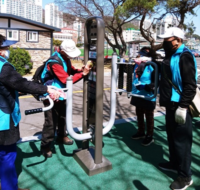 동여수노인복지관 2021년 노인사회활동지원사업 생활체육시설 소독 사업단입니다.