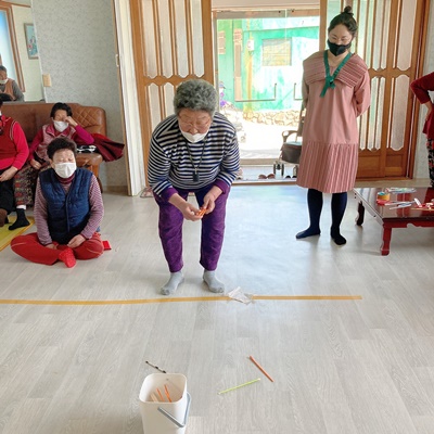 봉산여자 경로당 어르신과 함께 젓가락을 사용한 투호놀이, 산가지쌓기를 진행했습니다.
