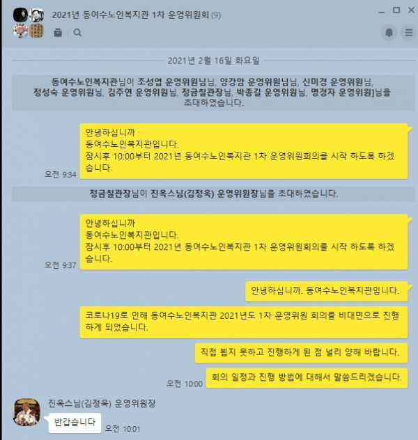 2021년 동여수노인복지관 1차 운영위원회의 결과 공고