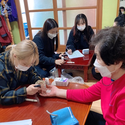 한영대 간호학과 연계하여 경로당 어르신을 대상으로 혈압, 혈당 체크를 기록하여 개인별 건강 사애를 꾸준히 관리할 예정입니다.
