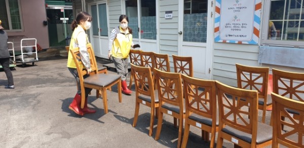 경로식당 의자와 테이블은 알코올로 소독하고