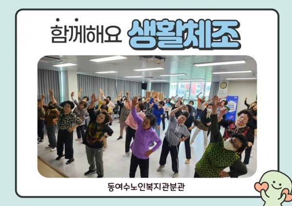 생활체조는 신체 기능 유지와 건강 증진에 도움이 되는 인기 프로그램으로, 매 수업마다 활기차고 즐거운 분위기 속에서 수강 어르신들의 높은 참여와 만족도를 이끌어내고 있습니다 :)