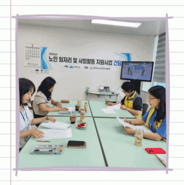 간담회를 진행하여 노인 일자리 사업성과 개선 사항을 공유하고 노인 일자리 참여자 보호 및 지역사회에 도움을 줄 수 있는 역할을 하기로 다짐하는 시간이었습니다.
