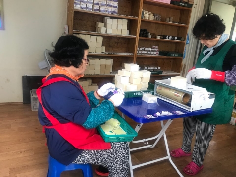매서운 추위에도 어르신들이 열정으로 비누를 생산하시며 많은 판매가 이루어 지기를 기원하셨습니다.