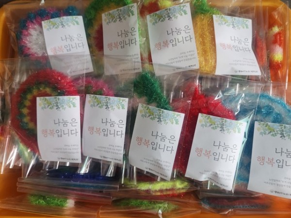 이번달에는 뜨개나눔 어르신들이 정성껏 만들어주신 수세미를 복지관 소식지에 담아 따뜻한 나눔을 실천하였습니다. 많은 수량이 필요한 상황이였지만, 어르신들 모두 적극적으로 참여해 주신 덕분에 필요한 수세미를 무사히 준비할수 있었습니다. 우리 어르신들 최고^^