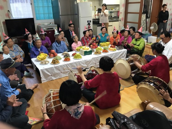 5일(금) 미평동 고락경로당, 11일(목) 만덕동 동석천 경로당 어르신들과 함께 생신잔치를 진행하였습니다. 생신잔치에는 보건소 건강증진과 연계하여 어르신들의 건강체크, 우도풍물과 연계하여 어르신들을 위한 공연을 해주셨습니다. 또한 생신잔치 경로당을 위해 새마을 부녀회, 통장, 개인 자원봉사자분들께서 생신상 준비 및 마무리까지 도와주셔서 진행할 수 있습니다.