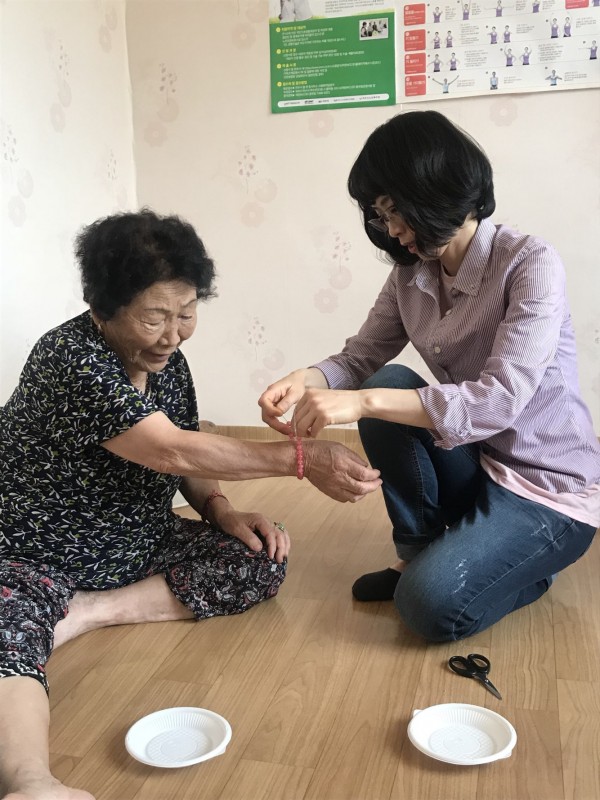 경로당운영혁신사업 율촌읍 중산 경로당 어르신들과 함께 비즈 공예 활동으로 집중력 향상과 치매 예방으로 신체적.정서적 건강증진을 도모할 수 있었습니다.