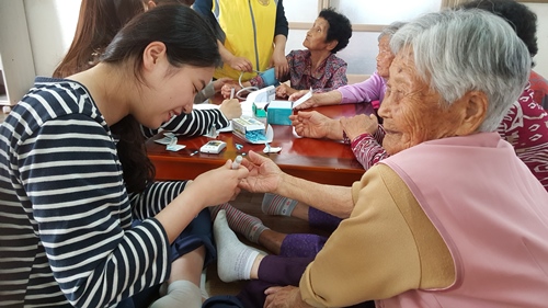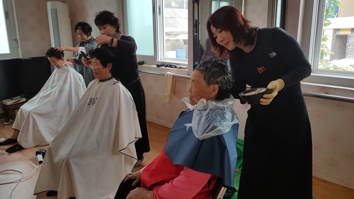 섬 주민들의 복지욕구를 해결하기 모두 3개 팀으로 구성된 봉사팀들은 참석어르신들에게 이·미용서비스, 건강증진, 신바람노래체조를 진행 하였습니다.