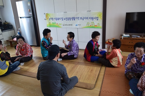2018년 5월 11일 (금) 14:00~15:00 노인공동생활가정보금자리사업 신바람노래체조를 평사여 보금자리에서 진행하였습니다.