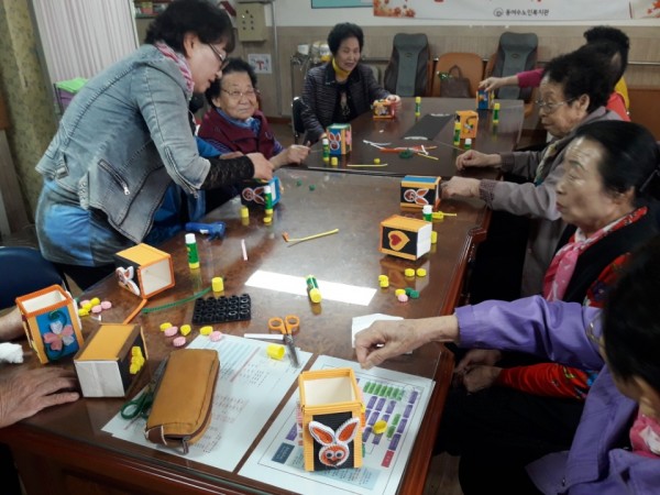 금일 복지관 1층 건강관리실에서 진행된 독서놀이터는 강사님의 재미난 동화구연으로 어르신들 웃음소리와 이야기 나눔이 수업 내내 이어졌고 동화 내용과 이어져 만들기까지 진행하여 어르신들이 집중도를 높일 수 있었습니다.
